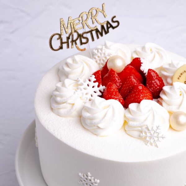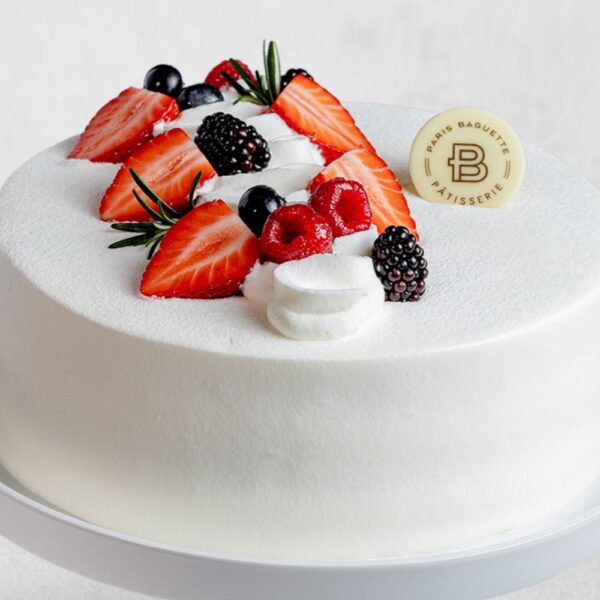 Three layers of pillowy vanilla sponge, filled with rich whipped cream and fresh strawberries.
