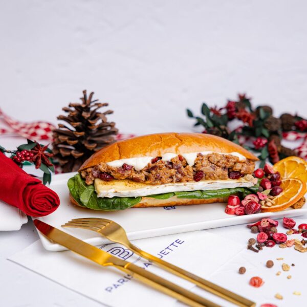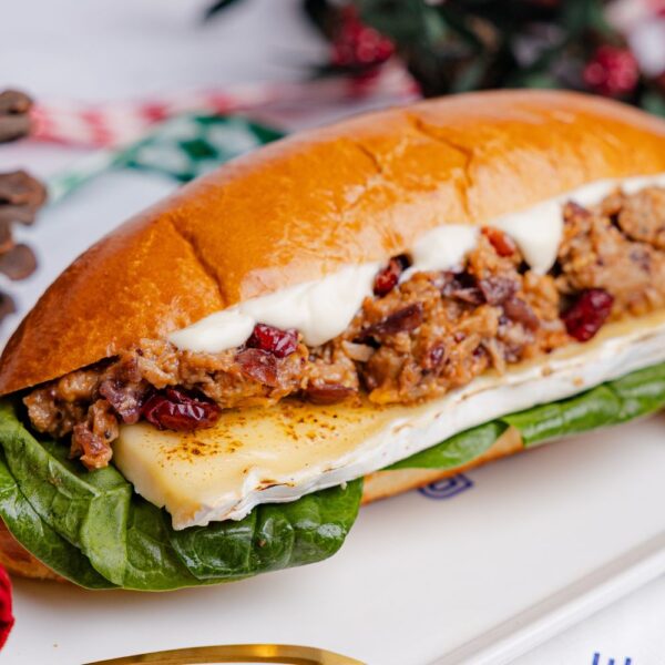 Pulled turkey, cranberries, stuffing and brie, all in our soft brioche baguette.