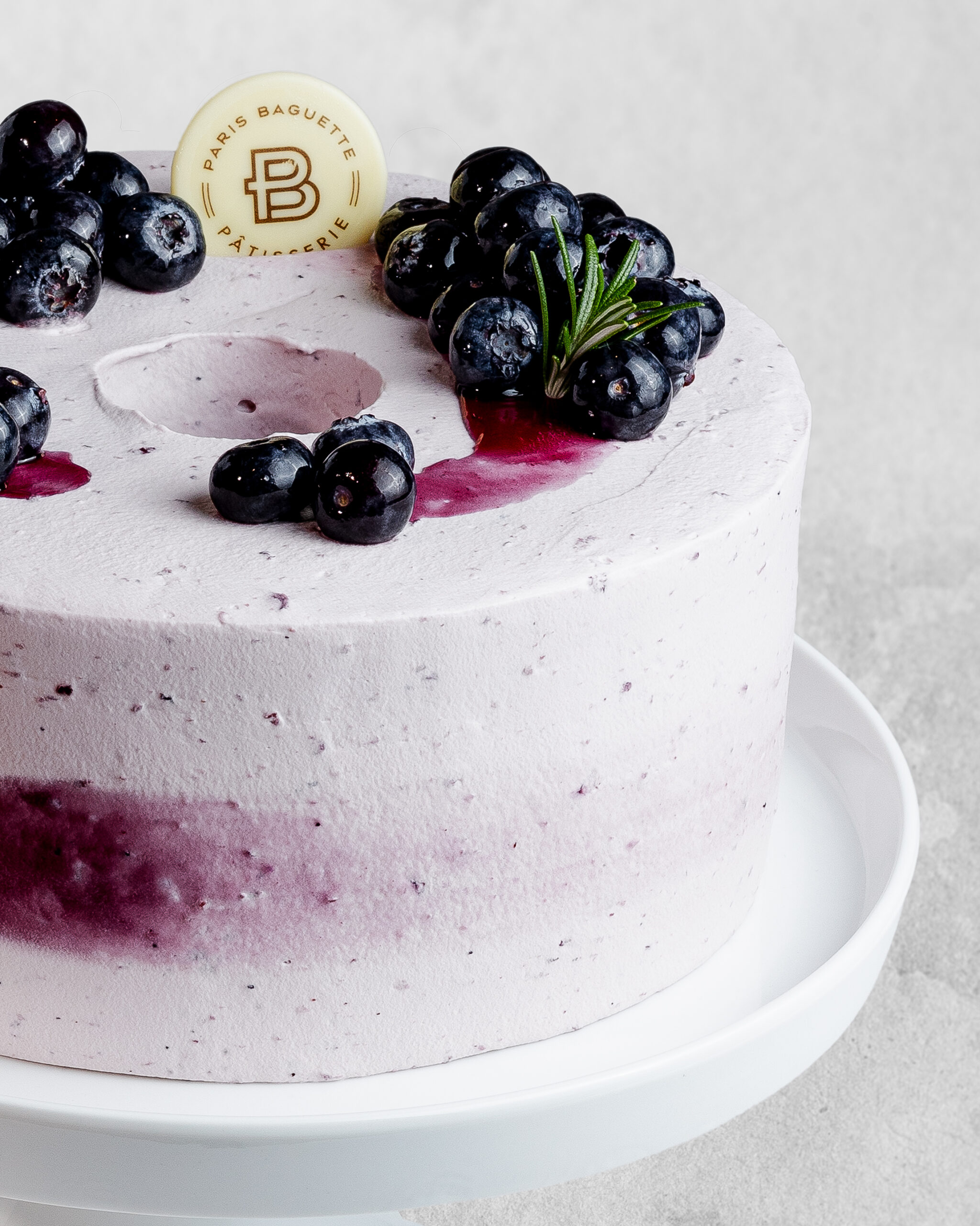 Three layers of light and airy vanilla sponge cake, complemented by smooth whipped cream, and topped with luscious blueberries. A perfect touch of sweetness to brighten any celebration.