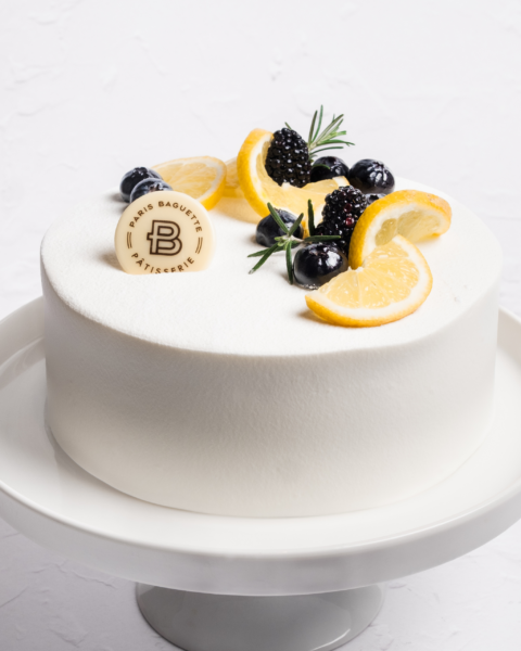 Artisan-crafted. A trio of chiffon blueberry sponge, filled with whipped blueberry cream and blueberry compote, finished with a selection of fresh berries.