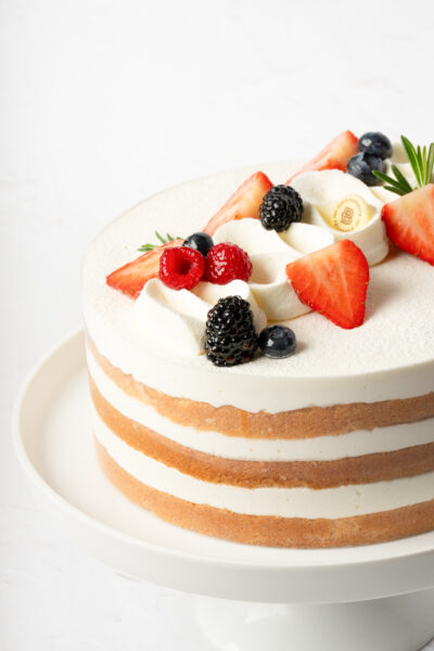 Artisan-crafted. Three layers of pillowy vanilla sponge, filled with rich whipped cream and fresh strawberries. Crowned with a selection of fresh berries.